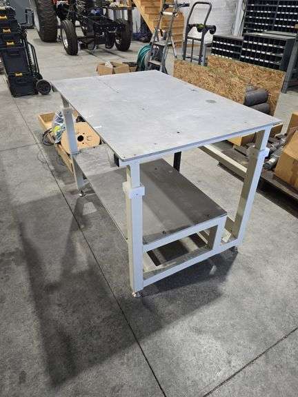 LOT 30 - Stainless with hyd raise Worktable with shelf, 29"W x 44"L x 33"T, stainless top