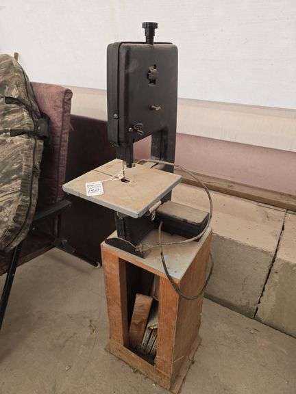 LOT 180 - Black and Decker 7-1/2" power band saw on homemade stand with extra blades