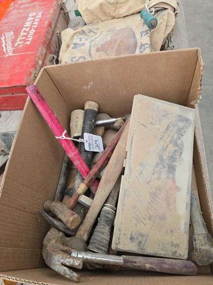 LOT 219 - Rivet gun, claw hammers, and ball ping hammers
