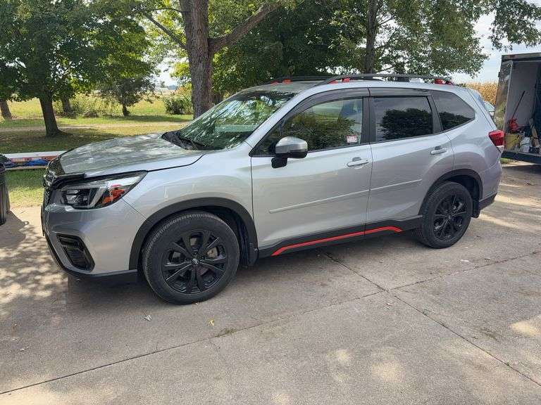 LOT 1 - 2021 Subaru Forester with 28,026 miles, touch screen radio, backup camera, VIN#JF2SKARC5MH5189, sunroof, power windows, locks, and mirrors, seat warmers, push start, 2.5L engine, dual function x-mode, advanced cruise control, service records, like new, Sport Mode, Fully loaded