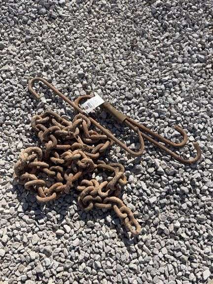 LOT 347 - Large chain with out hooks and 3 meat hanging hooks