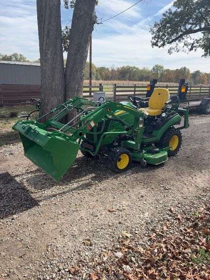 2023 John Deere 1025R Tractor with 60'' Auto Connect mower deck, only 127 hours, loader bucket, foot throttle, 4wd, 540pto, 3pt, quick hitch, 120R Loader, 1LV1025RKPP869800, (Limited Basic Warranty until 2000hr/May 2029)