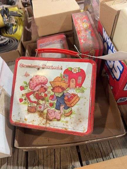 LOT 136 - Strawberry shortcake vintage lunch box with other tins