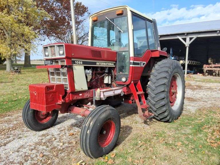 1980 International 1086 Wide Front Tractor, 18.4R38 Rear Tires, 10 front weights, 2 remotes, small 1000 and 540pto, T/A, Cab, new hour meter shows 1081 hours, hours unknown, s/n- 2610181U44956.